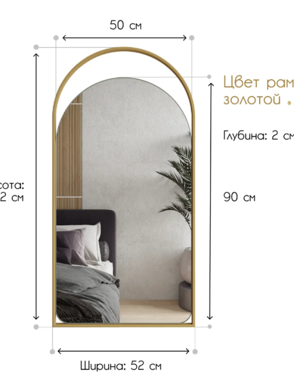Зеркало «Artful». Артикул GMZ-04-1/2/3 Зеркала-арки часто используют дизайнеры интерьеров для того чтобы «оживить» пространство, добавить в него свет, создать иллюзию его расширения. Представленное арочное зеркало настенного типа является ярким тому подтверждением. Размеры этой модели делают зеркало функциональным, а изящная металлическая рама вместе с ним делает его универсальным. Зеркало подходит для ванной, спальни, коридора, гостиной и при этом, благодаря классической форме, способно поддержать любой стиль интерьера. Зеркальное полотно отличается высоким качеством. Оно произведено бельгийской компанией AGC, продукция которой считается эталонной.Характеристики:– габаритные размеры – 1020х520х20 мм; – размер зеркального полотна 900х500 мм, толщина – 4 мм; – размеры профиля рамы 10х20 мм; – стойкая порошковая окраска; – цвета на выбор – золотой, чёрный, белый; – вес – 7 кг; – саморезы для крепления к стене в комплекте; – гарантия – 1 год.