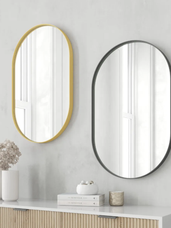 Зеркало «Harmony mini». Артикул GMZ-10-1-1/2/3 Классическая овальная форма и минималистичный дизайн овальных зеркал создают возможности для использования их в любых пространствах. Ярким примером является элегантное овальное настенное зеркало в тонкой металлической раме, которое можно использовать в современных ванных комнатах, спальнях, коридорах, гостиных, причём как в просторных загородных апартаментах, так и в малогабаритных квартирах. Зеркальное полотно высокого качества. Оно является продукцией известного на весь мир бельгийского производителя AGC. На обратной стороне рамы имеются специальные крепёжные элементы.Характеристики:– габаритные размеры – 810х510х40 мм, металлический профиль тонкий – 4х40 мм, выступ рамы – 15 мм; – высококачественная матовая порошковая окраска; – возможные цвета – золотой, чёрный, белый; – саморезы для крепления к стене в комплекте; – вес – 10 кг; – гарантия – 1 год.